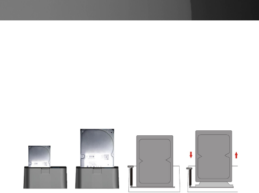 Insert the 2.5” or 3.5” SATA drive(s) you wish to install, such that the 3.